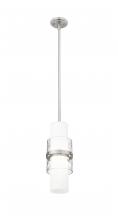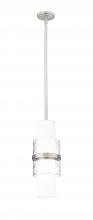 A modern style with a classic touch, the Cayden family features an opal white glass cylindrical shade, next we add a cylinder of textured glass finished off with a decorative cuff, and suspended with black braided cloth-covered cords that complete the stun