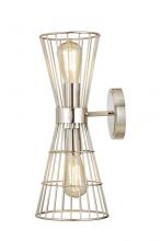 Angular geometric shapes created by the stacked conical steel cages create a visual statement for any room. Available in a choice of finishes such as Matte Black, Polished Nickel, and Rubbed Brass, this collection is both contemporary and warm. Complete th