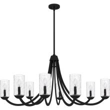 The Allard chandelier is a stunning centerpiece that commands attention. Clear water glass shades add a touch of sophistication and allow the light to shine through brilliantly. Choose from two sizes of chandelier in either matte black or brushed nickel to