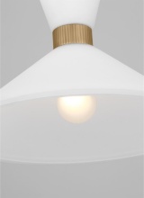 Inspired by playful mid-century modern design, the Drew & Jonathan Belcarra Medium Pendant is accentuated by a flared glass shade with ribbed metal details and etched white glass that bestows an almost whimsical touch to the clean design. Available in three finishes, Brushed Steel, Midnight Black, and Satin Brass, the Belcarra looks great on its own or when grouped in multiples. This product may be mounted on a sloped ceiling and is cETL listed for damp locations, making it the perfect lighting solution for any space.
