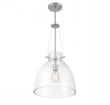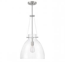 The Savoy House Foster 1-light pendant is the perfect way to add a sleek look to any space. Its large shade of clear seeded glass has a pleasantly curving shape and pairs nicely with the satin nickel finish. Foster is 25.50" in height and 14" in width. It uses 1 standard size bulb with a max of 60 watts (bulb not included). Comes with four 12" downrods and one 6" downrod.
