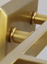 The Sean Lavin Monterro four light vanity fixture in burnished brass provides abundant light for your bath vanity, while adding a layer of today's style to your interior design. Monterro features beautiful tapered glass shades and exquisite cast details, including a cast backplate, cast ring, and hook hardware that elegantly supports the shades. The Chrome version is available with two glass options; either White Opal Etched glass or Clear Seeded glass, while the Burnished Brass, Satin Nickel finish is available in Clear Seeded glass only.