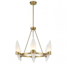 With its petals of handmade strie glass and warm brass finish, the Savoy House Nouvel 6-light chandelier blossoms like a gorgeous Art Deco-meets-contemporary flower. It will create a stunning focal point in any space. Nouvel is 27" in diameter and has an adjustable height ranging from 24.5" to 78". Comes with four 12" downrods and one 6" downrod. It uses 6 candelabra size bulbs of up to 60 watts per bulb (bulbs not included).