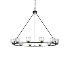 - The chandelier’s round iron frame creates a sleek and cohesive design that brings modern geometry to your space