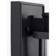 Inside the fixture's ribbed frame rests an elongated, clear glass shade that adds to the light fixture's modern flair.;A signature ribbed black frame constructed from durable corrosion-resistant, composite polymer materials distills both industrial